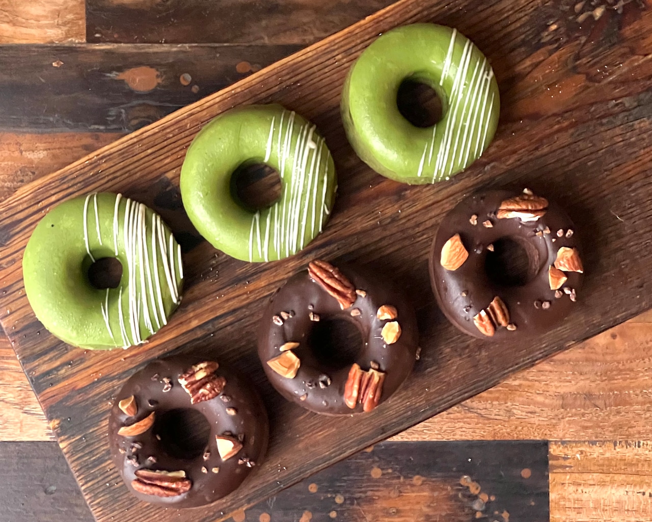 Vegan& Gluten freeのベイクドドーナツは、卵や乳製品、小麦粉を使わずに焼き上げた、しっとりやわらか ケーキドーナツです。今回は店頭で人気のチョコレートと抹茶の2フレーバが楽しめるセットです!