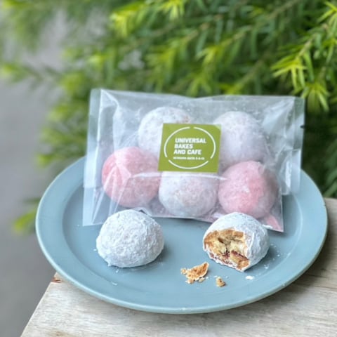 2026年初めのおまかせパンBOXは、ユニバーサルベイクスからのお年玉つき!ユニバーサルベイクスのパン8種に加えて「紅白ピーカンスノーボールクッキー /1袋」が入ります。おまかせパン8種の中には当店人気「あおさの塩パン」が必ず入る、通販限定のお得なBOXです。ぜひこの機会にお試しください!